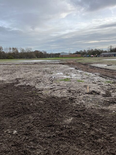 Het terrein was lange tijd niet toegankelijk voor zware machines, en hoewel iedereen – de aannemer, de projectleiders en de mensen van wijkbeheer – zich met volle inzet hebben ingespannen, is het door het aanhoudende natte weer niet gelukt het terrein op tijd klaar te krijgen.